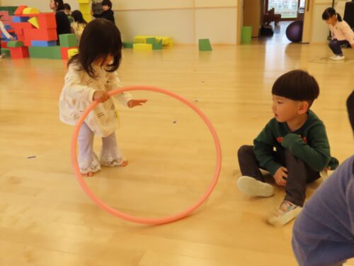 2歳は、自我の芽生えとその確立に向かって成長する大事な時期でもあります。自分で遊びを選び、存分に遊び、自分で納得して活動を終えるのはとても大事なことです。決められた時間の中で遊んでいますので、片付けの声掛けはします。でも、片付けられなくても大丈夫です。お子さんが活動の「よい終わり」を迎えられるように、一緒に見守りましょう😊