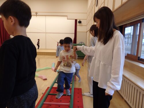 今日は朝から雨が降ったり止んだり・・・久しぶりにホールで自由遊びでした。