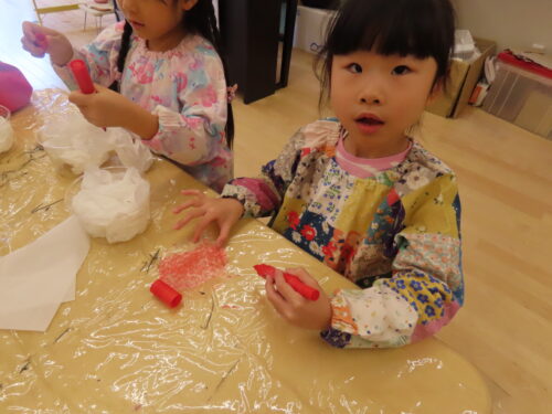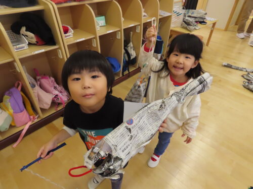 作り終わったら廃材を使って2個、3個とつくっているお友だちもいますよ!