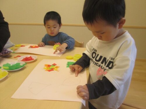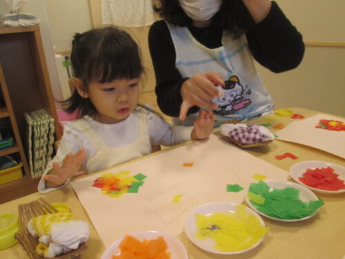 11月に入ってつぼみさんでは、のりの練習として紅葉を