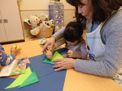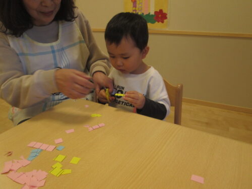 最近のつぼみさんは、初めての折り紙、初めてのハサミに挑戦しました!