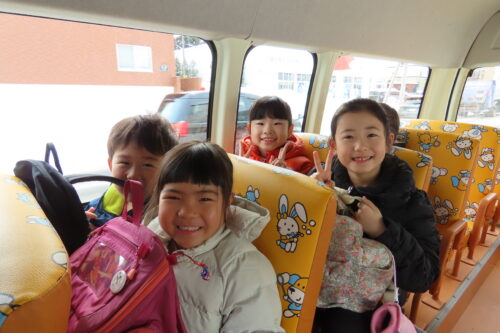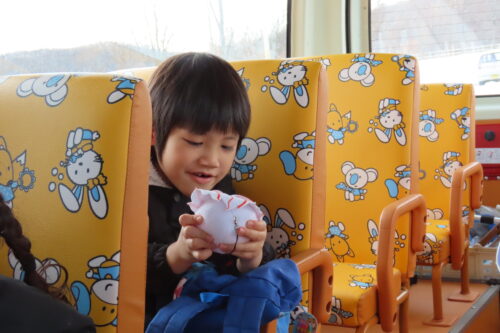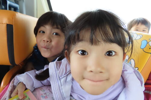 バスの中では、お友だちと楽しくお話をしていましたよ!