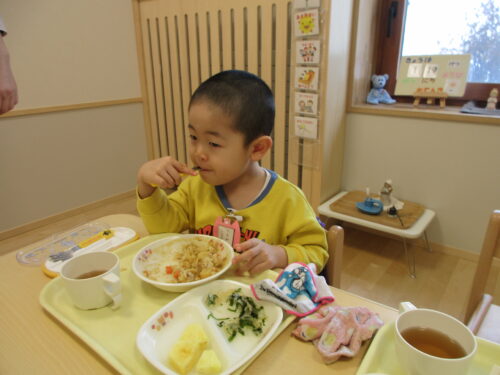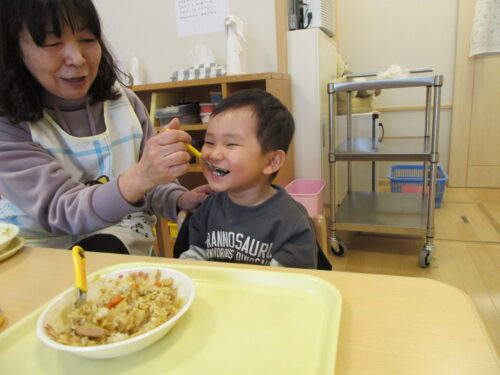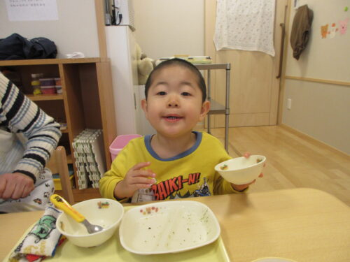 給食でも完食する喜びを味わうことが出来、とても嬉しそうでした。