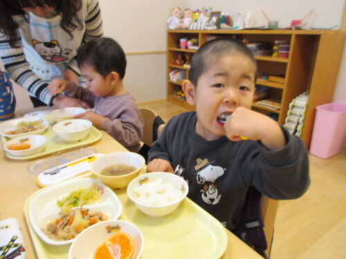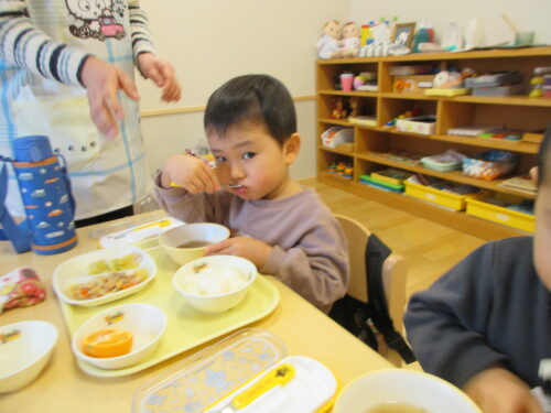 3学期からはつぼみクラスも給食です。