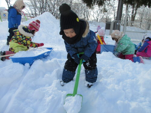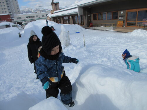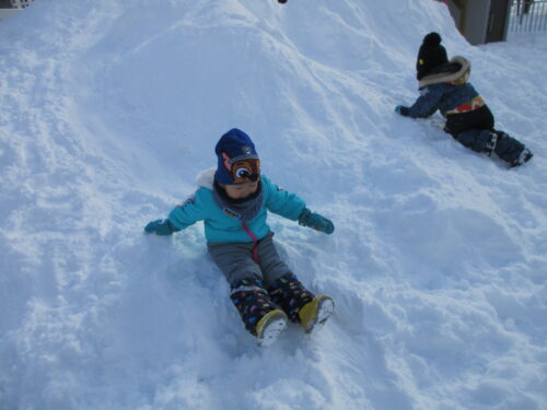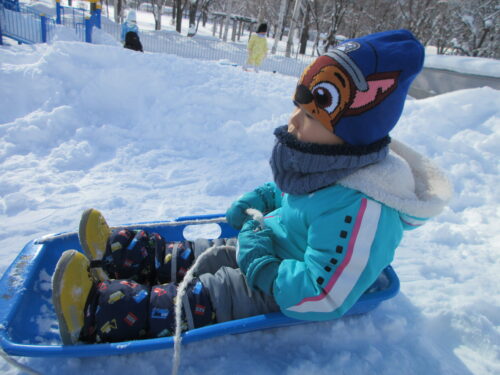 そりに乗ったり、雪山を登ったりお尻滑りしたりと、体を沢山動かして