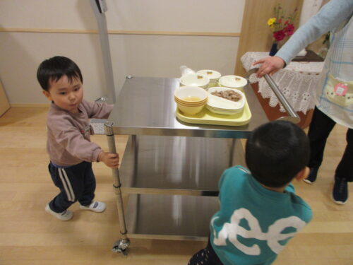 食器を給食室に戻しに行くのもお気に入りの作業となっています。