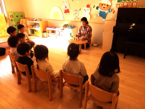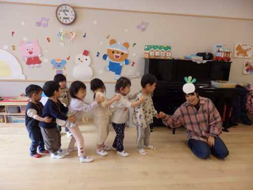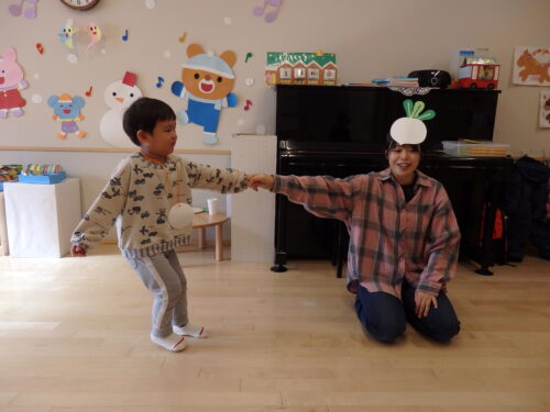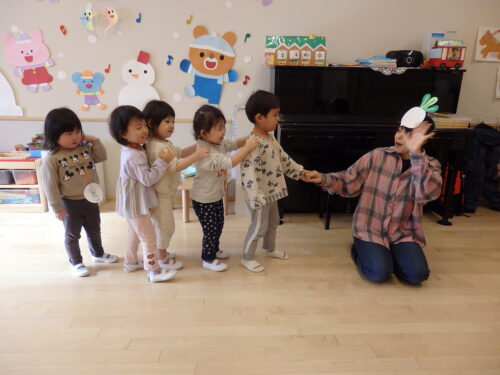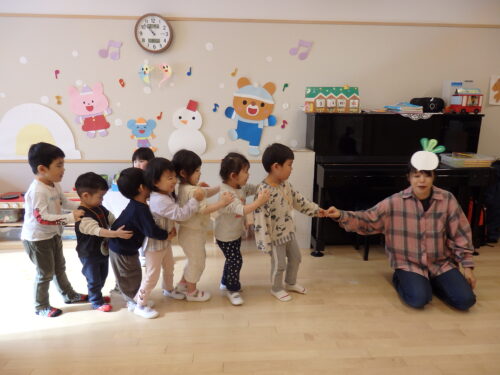 その後、ひかり組さんと一緒に過ごしました。今日は「おおきなかぶ」のお話を楽しみました🌱