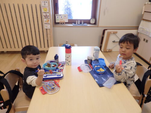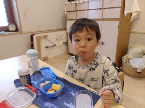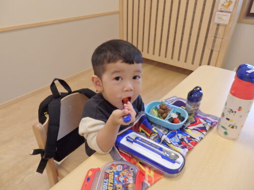 その後、分離登園をしている人は、お母さんが作ってくれた美味しいお弁当をいただきました🍱