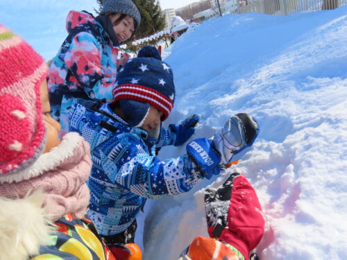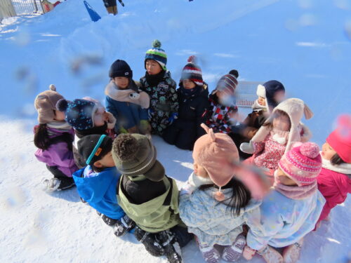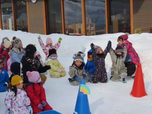 晴れ間がのぞく中、クラス対抗🌙🌟🌈そりリレーを行いました!