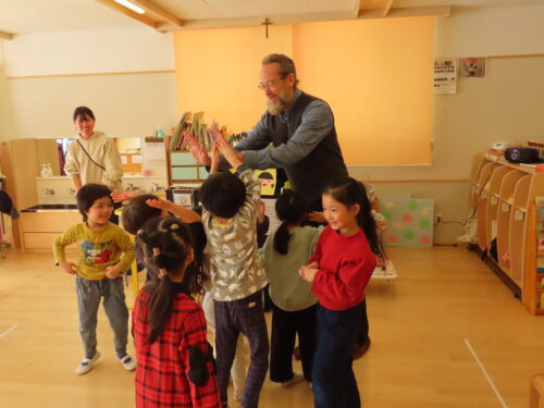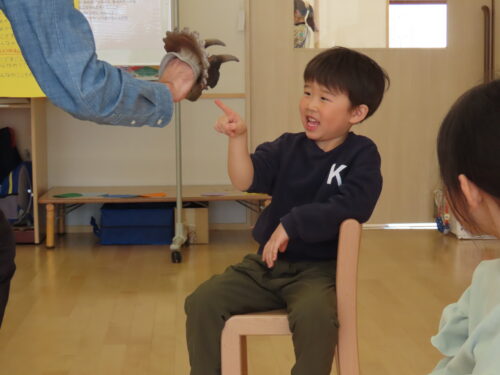 今日は、年長さん最後の『英語であそぼ』の活動でした。