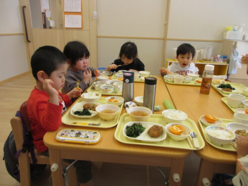 その日はそのままひかりぐみさんと朝の会をして、初めて一緒に給食を食べました。