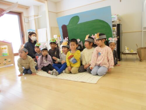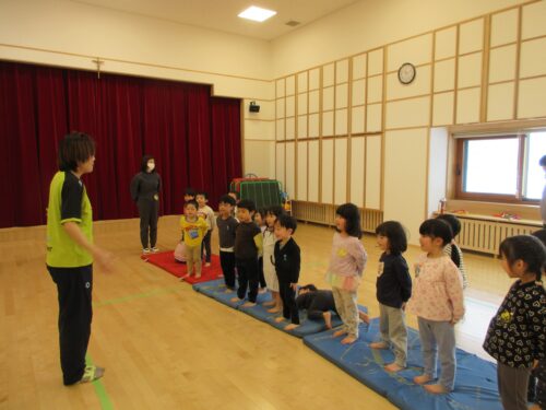 年少さんにも混ぜてもらい、劇遊びと体育教室に参加しました。