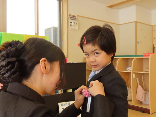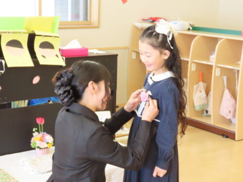 先生から素敵な「そつえんおめでとう」のコサージュを付けました。