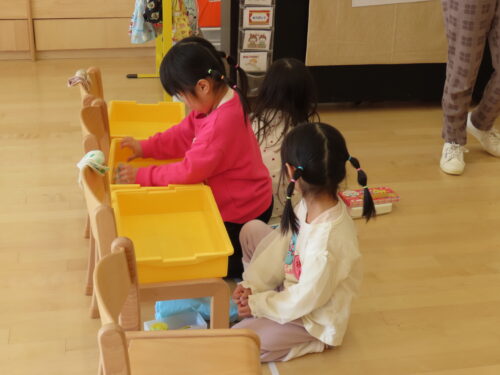 みんなで今年度使ったお道具や遊戯室、教室を掃除しました!