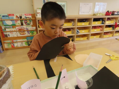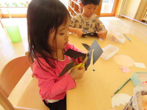 ハサミで切り、のりで貼っていきましたよ(^▽^)