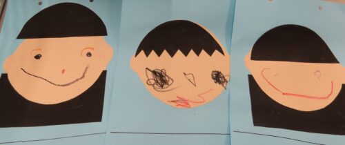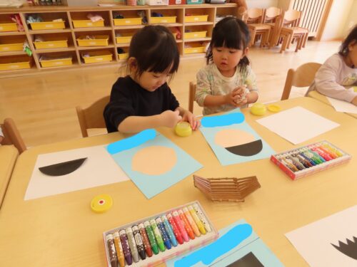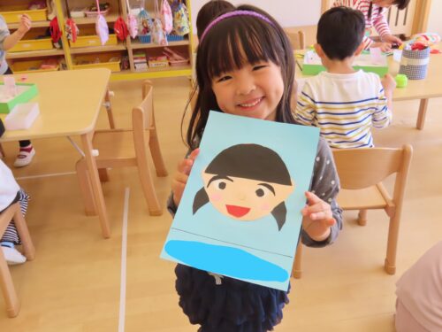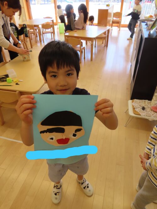お顔をクレヨンで描きました(o^―^o)