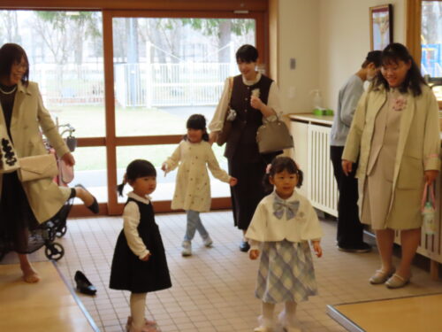 年長さんは卒園感謝の祭儀、親子で臨む教会での最後の行事、年少中さんは年長さんとのお別れ会で心を込めた発表。保護者の皆さまにもその姿をご覧頂き、これまでの園生活で培ったものを それぞれ想いを持ちながら表現し、相手に届ける様子。想いを受け、うれしい、寂しい、悲しい…という心模様。そのすべては、次のステージで飛躍するための大きな力となり、その力が一人ひとりの背中を後押ししていくことでしょう。