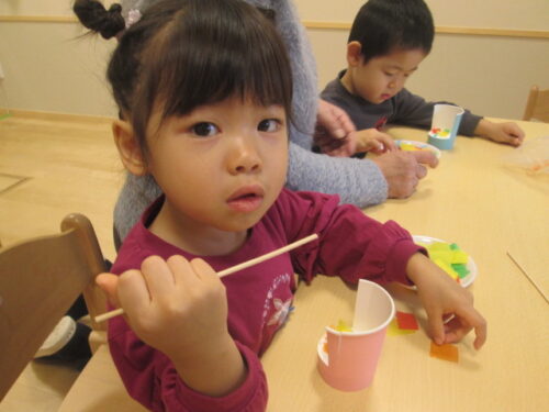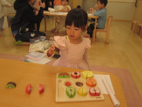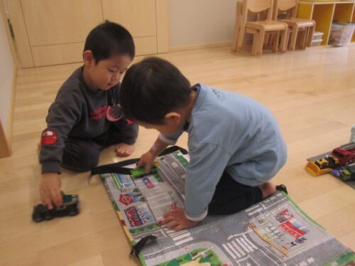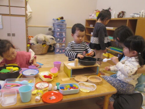 お部屋遊びでは「貸して」「今使ってるよ」などのおもちゃの貸し借りの際の