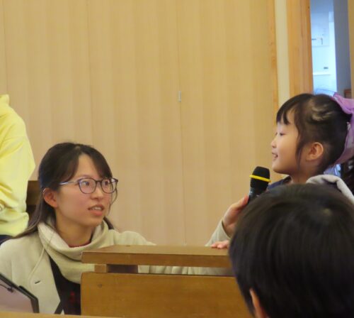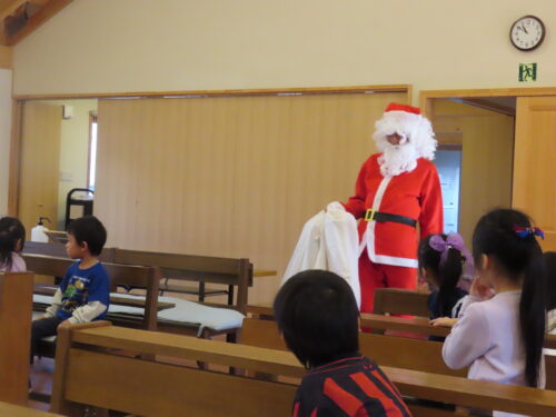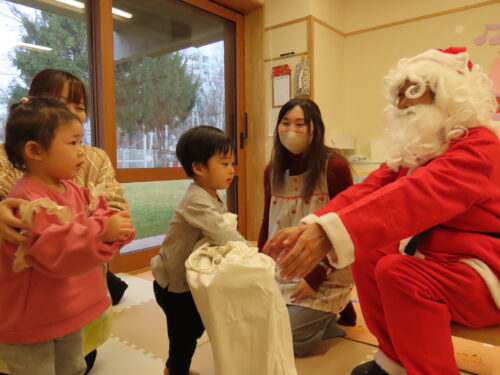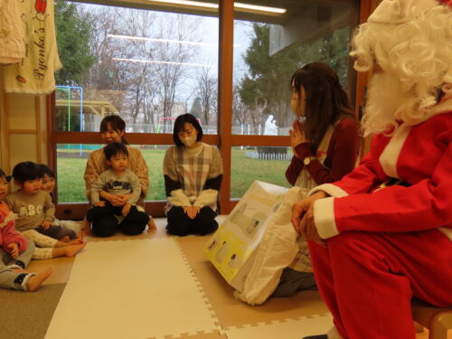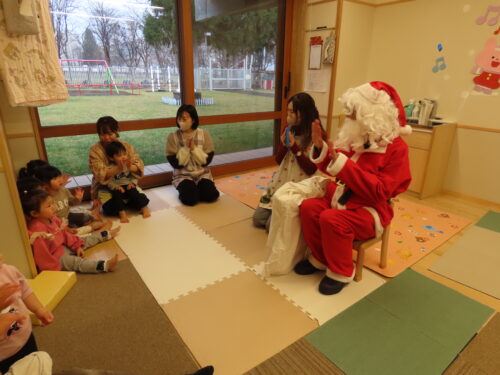 せっかく来てくれたニコラオさんにみんなから質問してみました。「どうやってきたんですか?」「トナカイの模様はどんな模様ですか?」どんな質問にも優しく答えてくださいました。