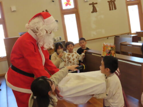 鈴の音と共にニコラオさんがプレゼントを持ってきてくれました!